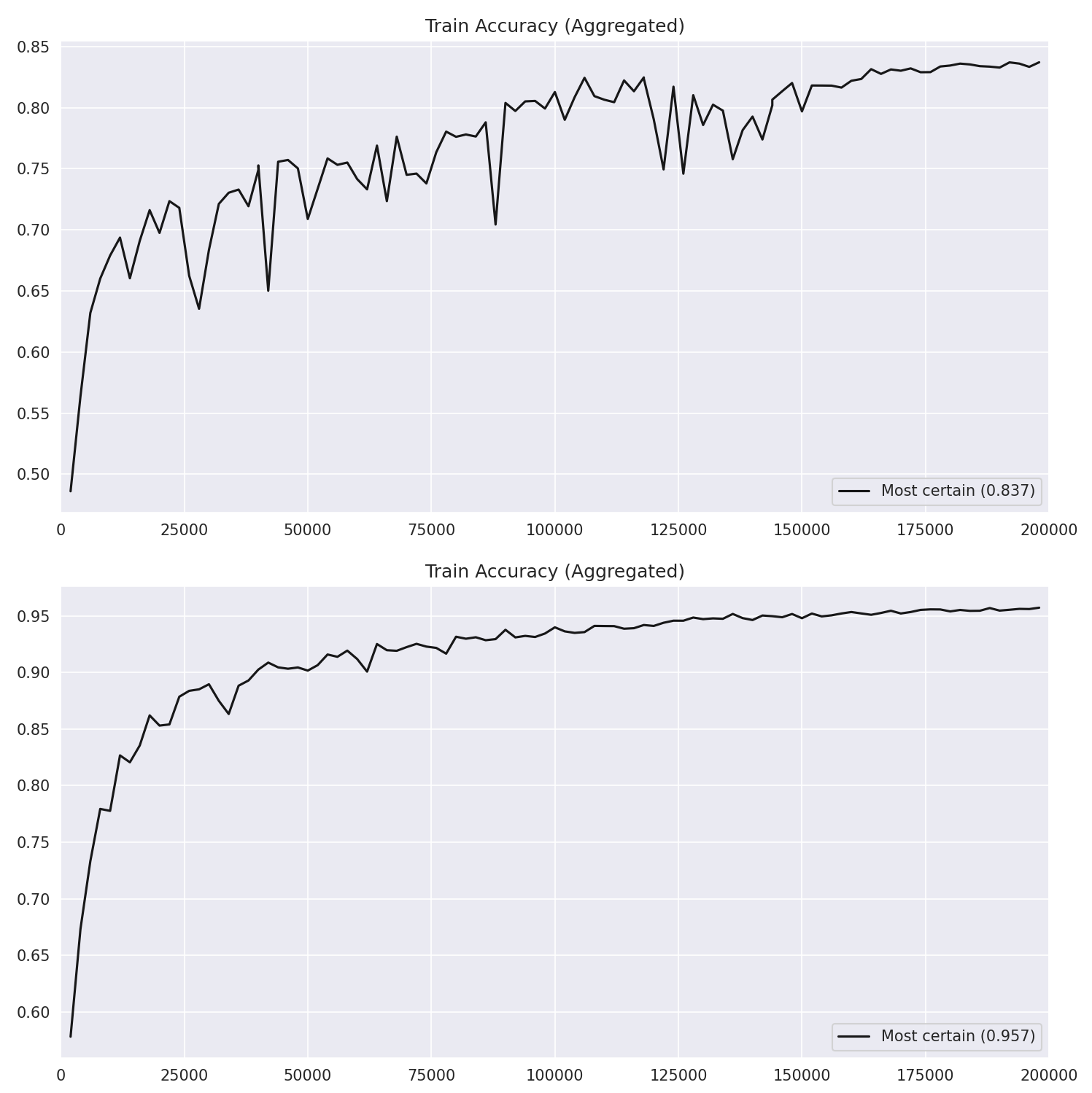 Figure 5: Reaching the 0.8 certainty threshold happens faster and more accurately in the modified model. ### The S-Curve of Thought